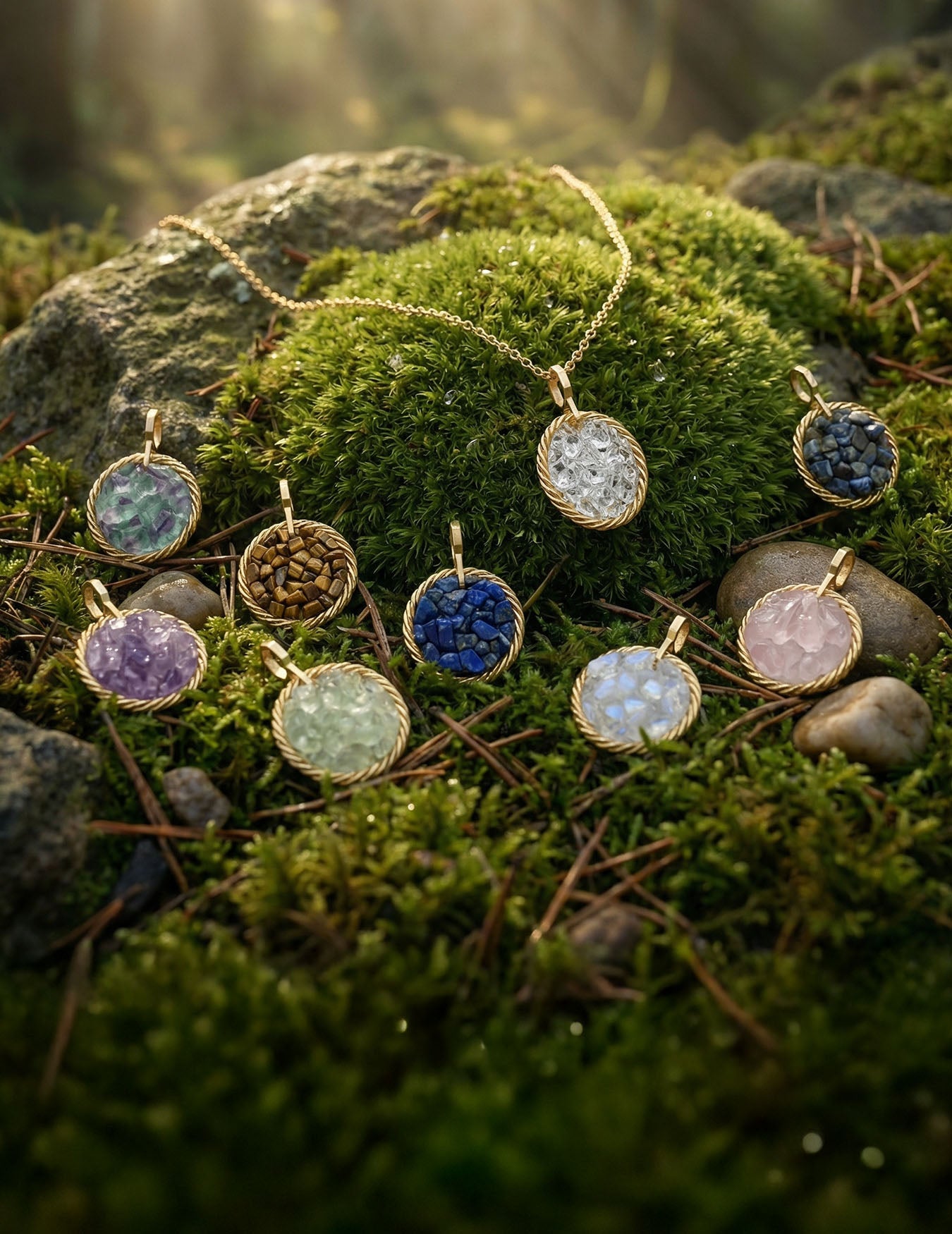 Amulet tensorowy z Kamieniem Księżycowym – Mosiądz pozłacany