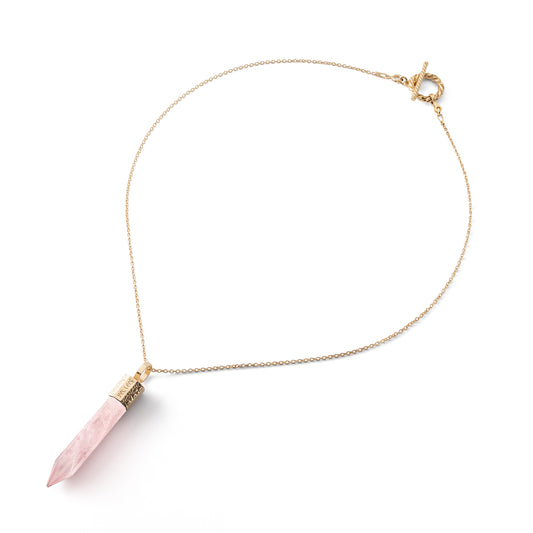 Naszyjnik 44 cm z Kwarcem Różowym – Srebro 925 pozłacane