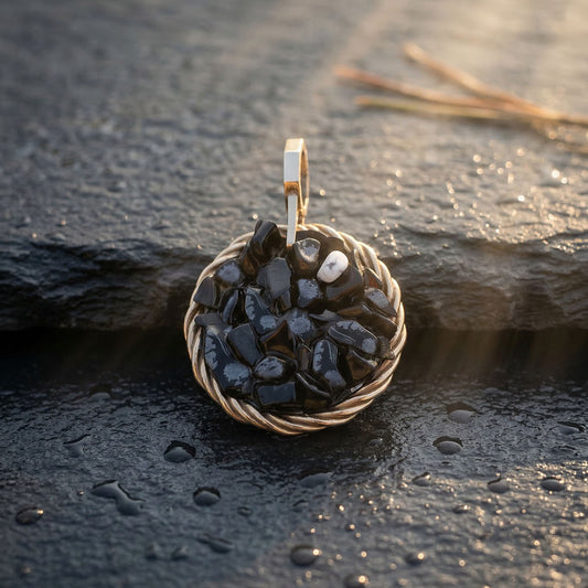 Amulet tensorowy z Obsydianem Śnieżnym – Mosiądz pozłacany