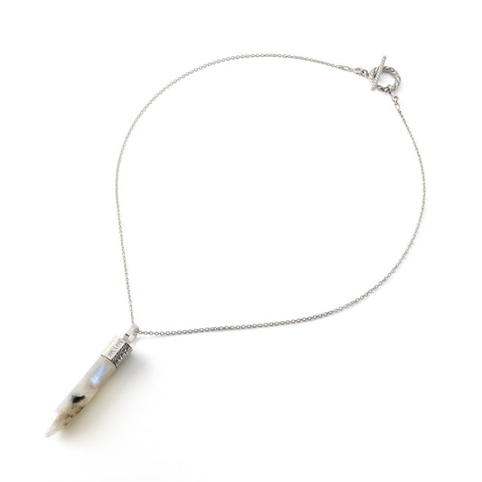 Naszyjnik 44 cm z Kamieniem Księżycowym – Srebro 925 pokryte platyną