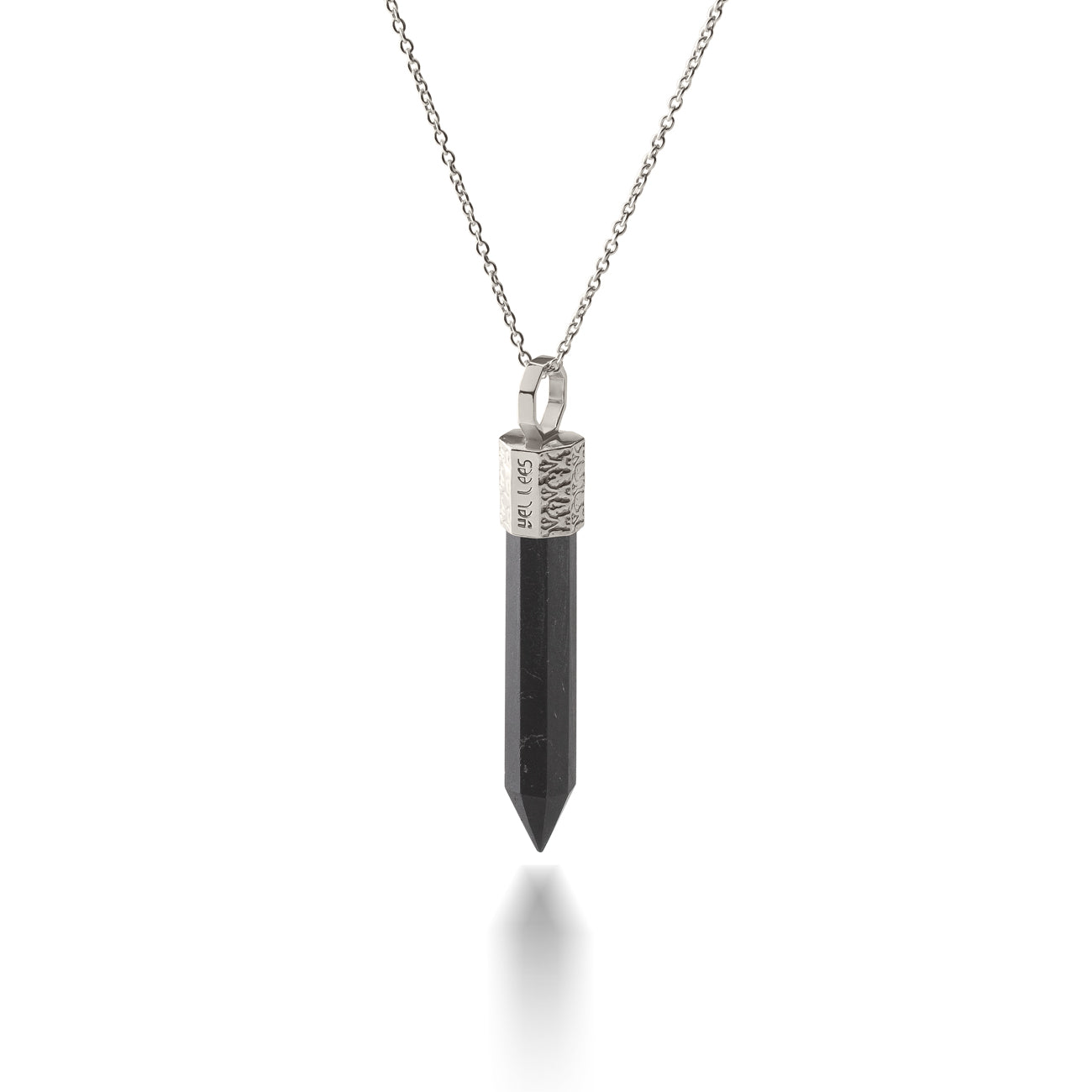 Ketting met hematiet 44 mm in 925 zilver verguld met platina uit de collectie TERRA 44 Het is een steen van moed, kracht en aarding. Hij helpt je gefocust te blijven, vastberaden te handelen en een diep gevoel van innerlijke vrede te ervaren. Ideaal voor wie zijn visies in de materie wil omzetten en in harmonie wil leven met de kracht van de aarde.