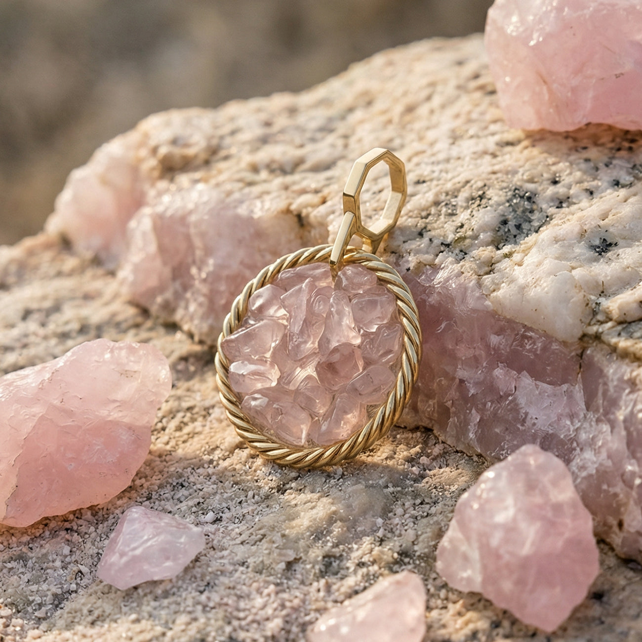 Amulet tensorowy z Kwarcem Różowym – Mosiądz pozłacany