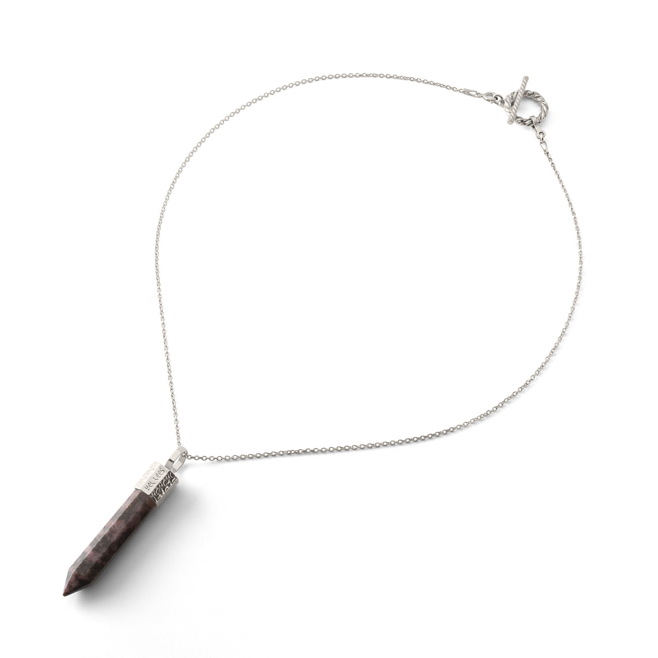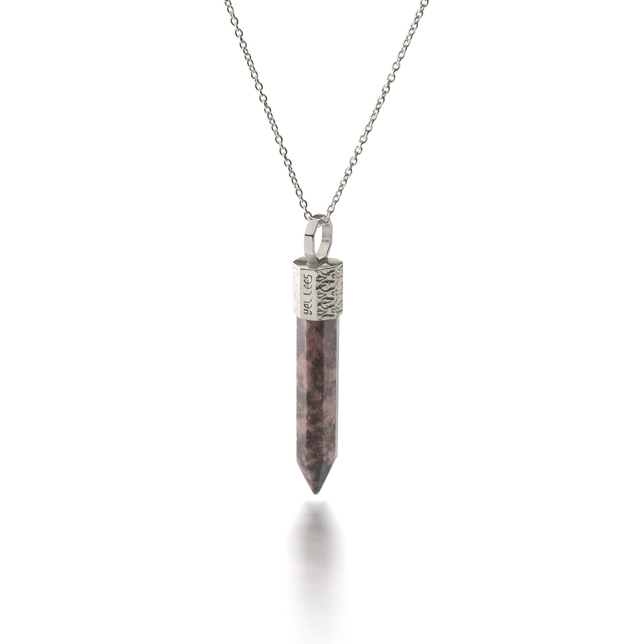 Naszyjnik z rodonitu 44 mm ze srebra 925 pokrytego platyną z kolekcji TERRA 44 to kamień emocjonalnej równowagi i przebaczenia. Pomaga przemieniać ból w siłę, uczy cierpliwości i przywraca spokój serca. Idealny dla osób, które chcą uzdrowić relacje, odnaleźć harmonię i żyć z otwartym sercem.