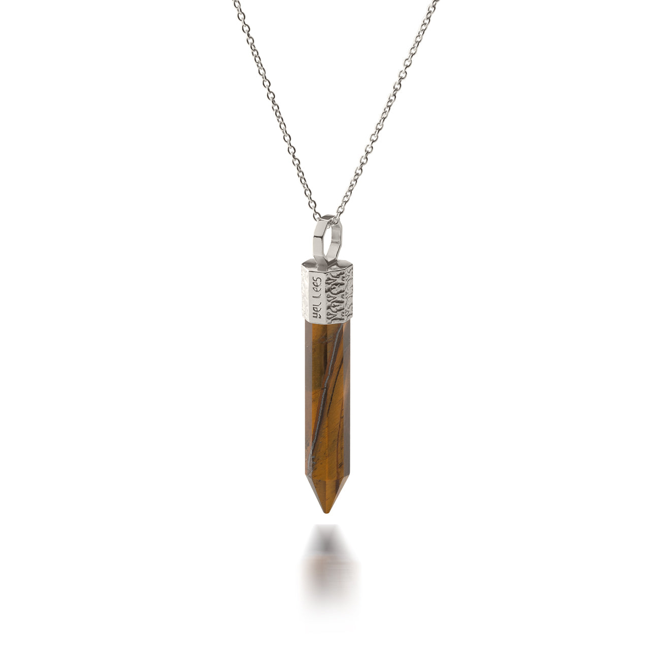 Ketting met tijgeroog 44 mm in 925 zilver verguld met platina uit de collectie TERRA 44 Het is een steen van kracht, moed en bescherming. Hij helpt je om vol zelfvertrouwen te handelen, angsten te overwinnen en op je eigen pad te vertrouwen. Ideaal voor wie wil leven met kracht, vastberadenheid en een heldere kijk op de toekomst.
